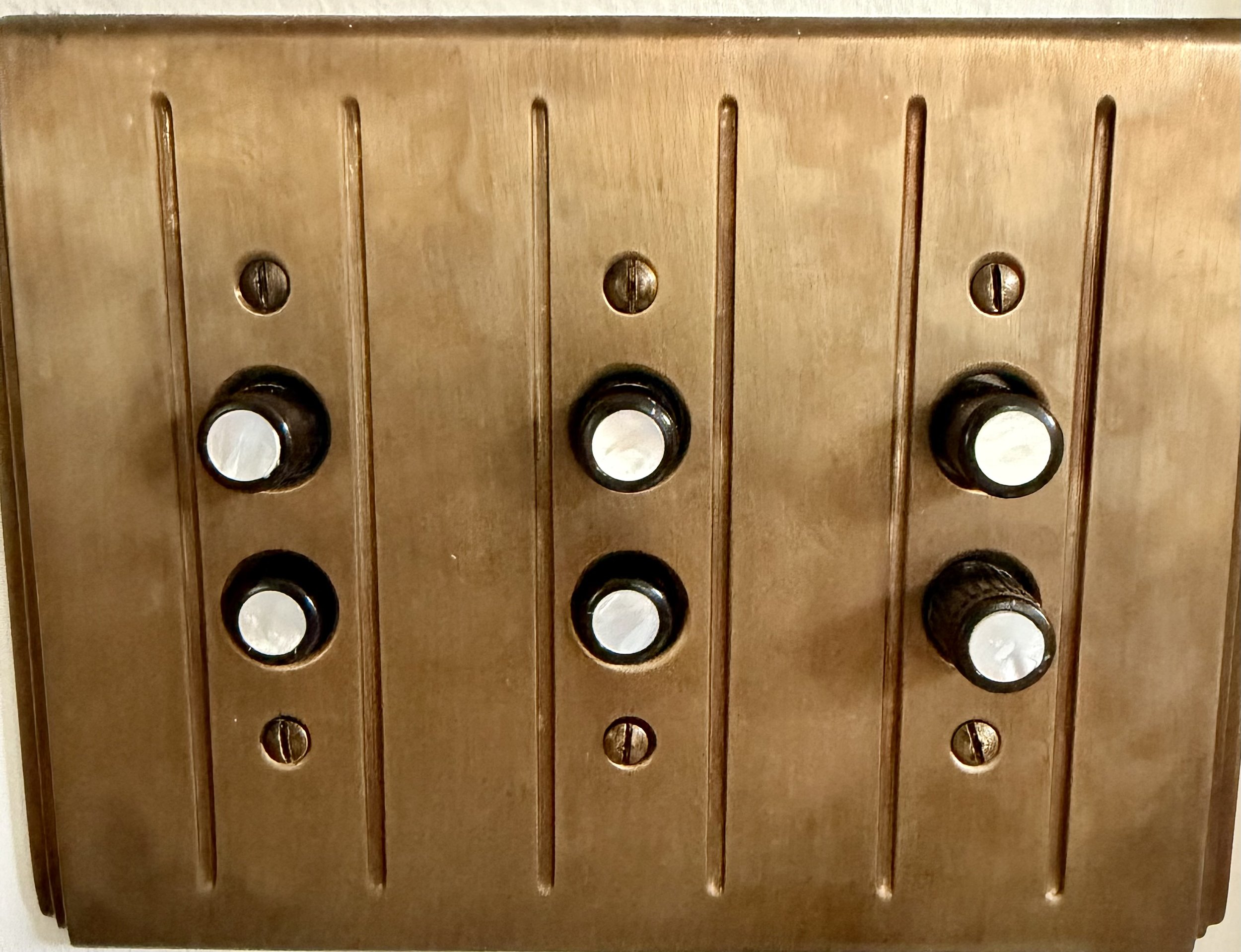 Several vintage lights were purchased from E-bay, which felt right in the historical home. To mirror the aesthetic, antique-inspired light switches were installed as well.