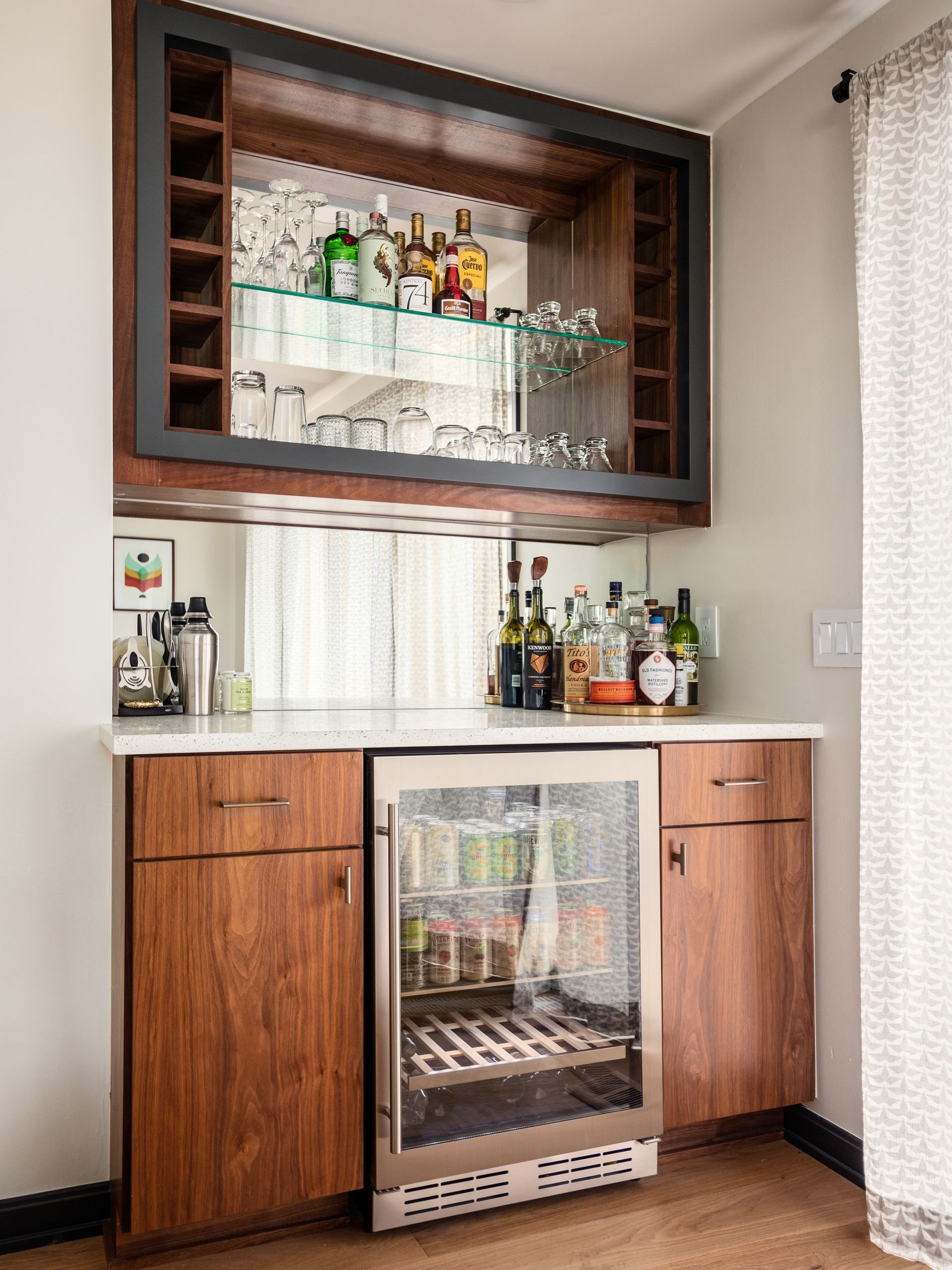 Thoughtful moments of detail bring the design to life, including the interplay of open shelving and cabinetry at varying depths. This subtle repetition adds rhythm and dimension throughout the space, reinforcing the balance between function, craftsmanship, and visual interest.